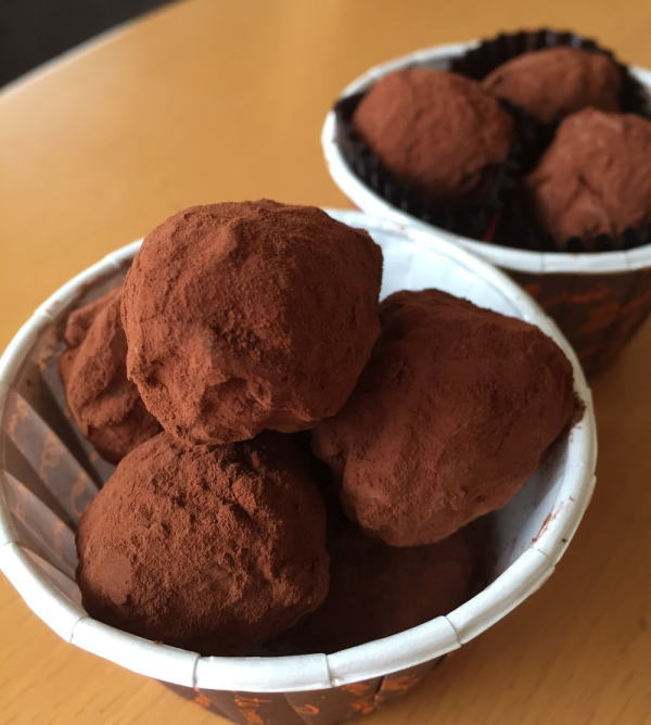 ゴハン類の次はお菓子です。cookpad「タァユ」さんのレシピは「パリッ!と美味しいトリュフ」です。チョコのコーティングで外はパリッとしていますが、中はトロリお口の中でとろけます。
